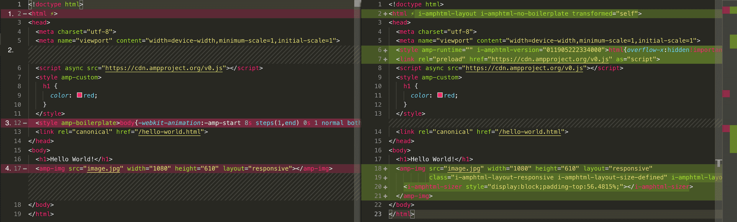 An AMP Optimizer takes a valid AMPHTML document as input and transforms it into an optimized version by applying additional optimizations that would be cumbersome to do “by hand”. You can recognize the resulting “transformed AMP” in the html element via the transformed attribute: